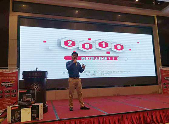 道可視廣東代理、廣州御卡汽車用品有限公司總經(jīng)理陳彥豪先生在會(huì)議中,帶來(lái)了“2019年,我們?cè)趺磼赍X?”的主題宣講。他表示360°全景行車輔助系統(tǒng)已經(jīng)成為了汽車后裝電子行業(yè)的發(fā)展趨勢(shì),且安裝車型幾乎覆蓋所有車型,市場(chǎng)潛力巨大。